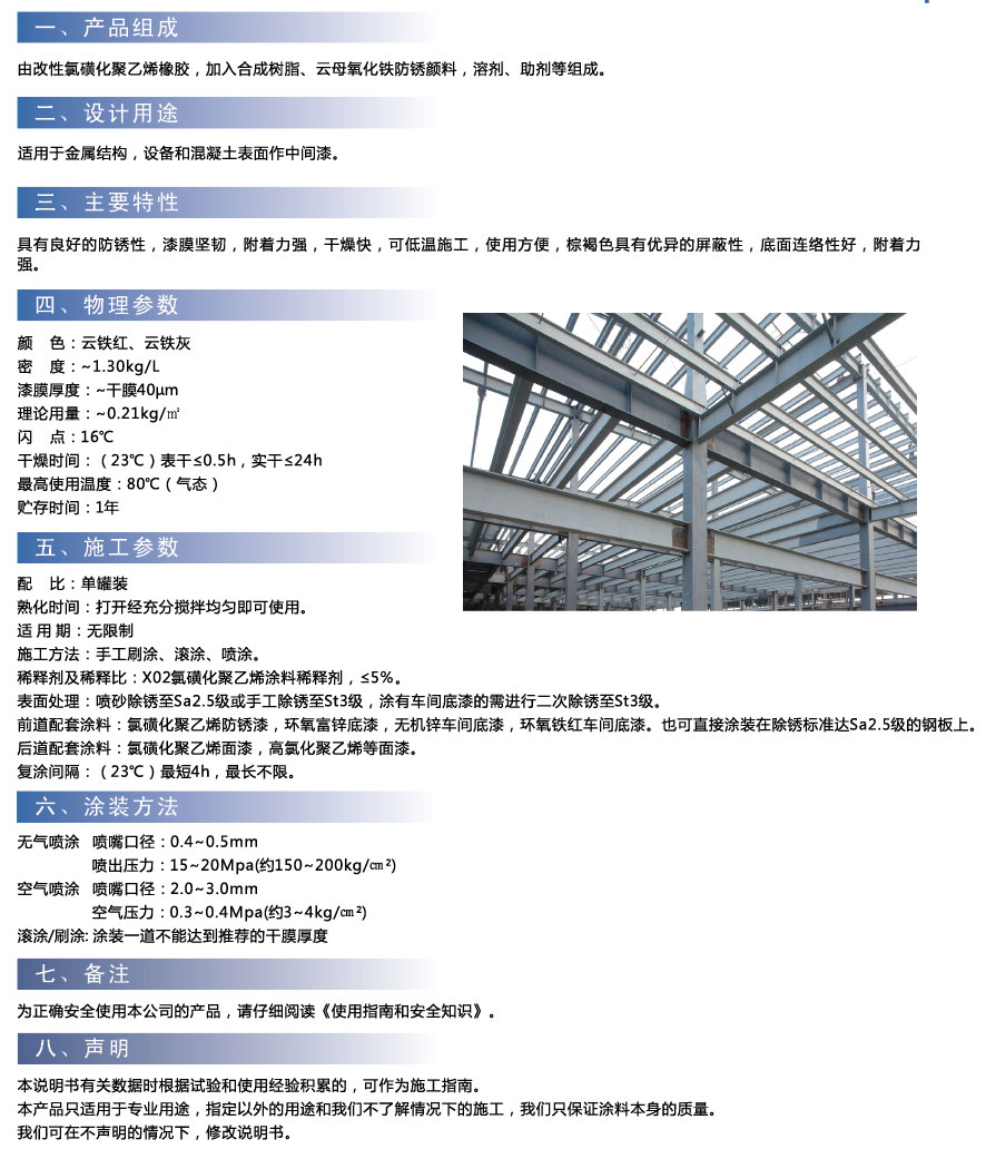 氯磺化聚乙烯云铁防锈漆(中间漆)